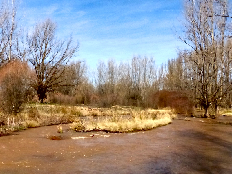 Iniciamos la segunda parte de la excursión. Esta más senderista, más naturalista. El sol está alto, pero las ramas de los chopos, aún desnudas, filtran la luz que no llega a ser intensa. Comenzamos el recorrido de la ribera del